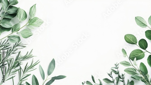 Naklejka premium Charming arrangement of green herbs and leaves, suitable as a decorative wall...