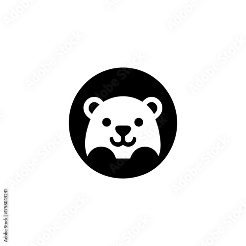 © Mamun360, Obraz premium Charming Bear Face Icon within a Graphic Black