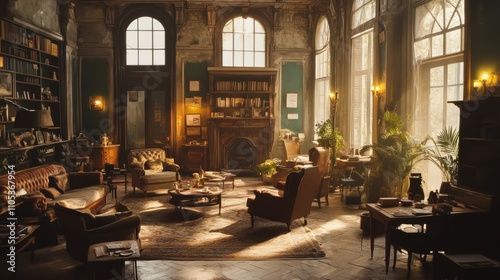 Naklejka premium Charming Bed and Breakfast Common Area with Cozy Seating and Homey Decor