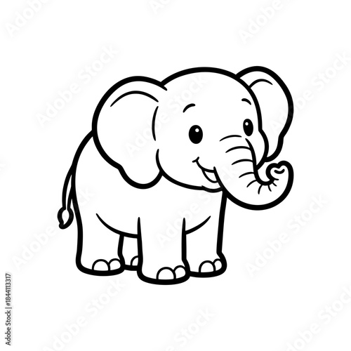 © axolotel, Fototapeta premium Charming black and white line art illustration of a cute baby elephant, capturing a joyful concept for children's designs, educational materials, and playful animal themes