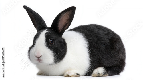 © vasyl pshyk, Fototapeta premium Charming black and white rabbit sits cutely on a transparent background ready for creative projects