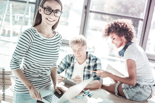 © zinkevych, Obraz premium Charming brunette using her gadget