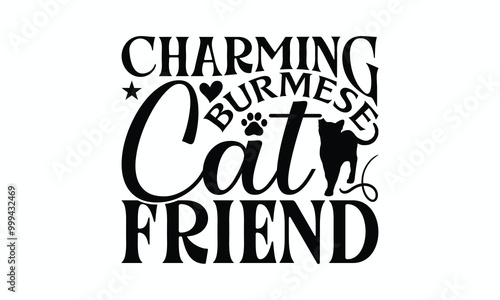 Fototapeta premium Charming Burmese Cat Friend - Burmese Cat T-Shirt Design, Handmade Calligraphy Vector Illustration, Cameo, Cricut, Eps, Files For Cutting.