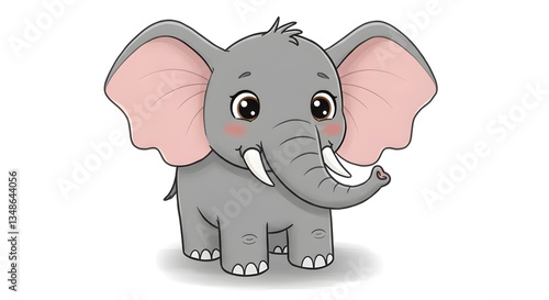 © Cici, Fototapeta premium Charming cartoon African elephant with expressive eyes, friendly smile, playful trunk.