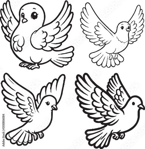 © Haider, Obraz premium Charming Cartoon Dove Silhouettes - Black and White Avian Illustrations"