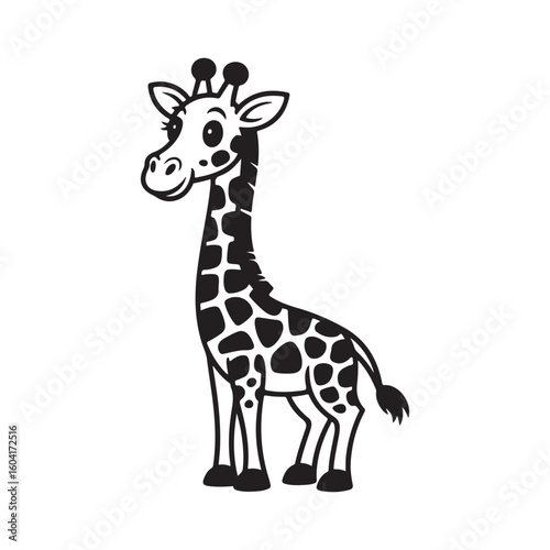 Fototapeta premium Charming Cartoon Giraffe Standing Tall with a Playful Expression in Black and White Silhouette Style Perfect for Children's Designs
