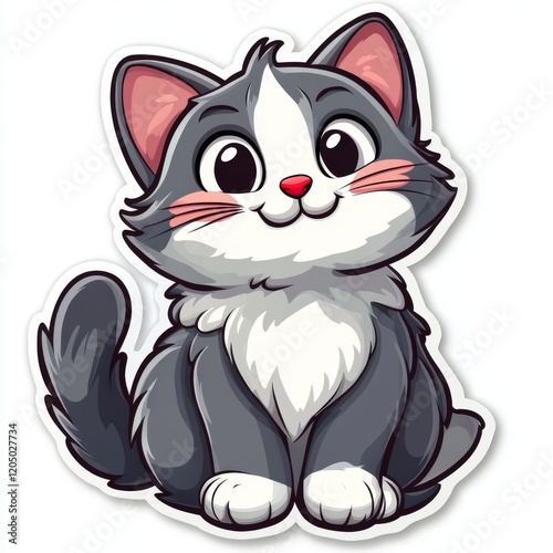 Fototapeta premium Charming Cartoon Kitten with Big Eyes and Sweet Smile, a Cute Feline Character Perfect for Childrens Designs and Fun Content