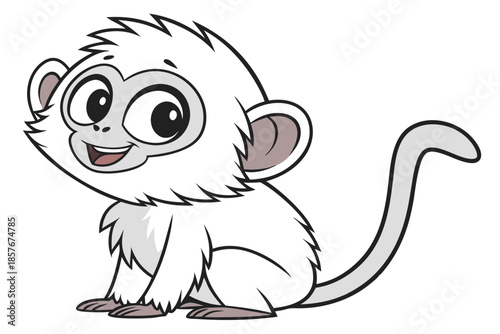 Fototapeta premium Charming cartoon monkey stands sweetly while holding a banana for a delightful treat