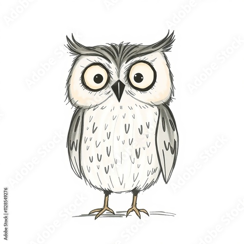 © Neuroillustrator3033, Fototapeta premium Charming cartoon owl standing cutely on white background with copy space