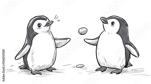 © ChromaDepot, Naklejka premium Charming Cartoon Sketch of a Confident Penguin in a Playful Hand-Drawn Style for Digital Artists and Illustrators
