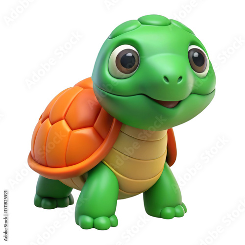 © Sneha, Fototapeta premium Charming cartoon toy turtle green orange shell isolated on a transparent background image