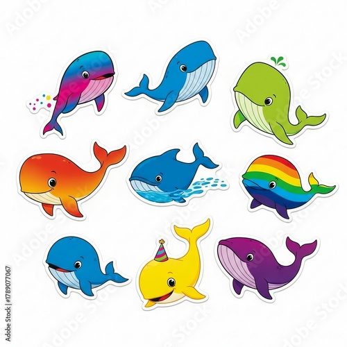 © Meng, Obraz premium Charming Cartoon Whales with Unique Expressions and Joyful Personalities