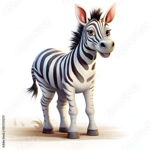 Obraz premium Charming cartoon zebra standing against a bright white background