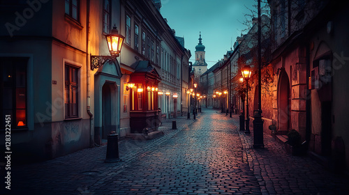 © Nikola, Obraz premium Charming Cobblestone Street Scene