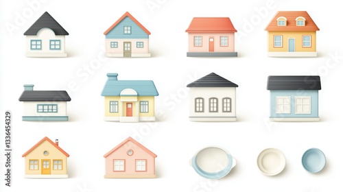 Fototapeta premium Charming collection of whimsical houses with unique designs set against a white background