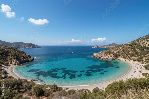 Fototapeta premium Charming cove with crystal-clear turquoise waters on a serene island