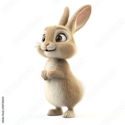 Obraz premium Charming 3D Rabbit, Soft Young Rabbit on White Background