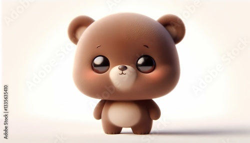 © Akram Mubarak , Obraz premium Charming 3D-style baby bear with friendly expression and cuddly look