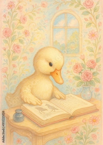 © Rawpixel.com, Fototapeta premium Charming duckling reading book
