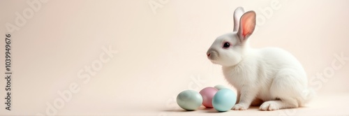 Obraz premium Charming Easter Bunny with Pastel Eggs in a Modern Setup