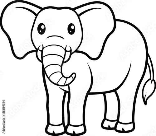 © Vectscape, Naklejka premium Charming Elephant Standing Front View Line Drawing for Various Designs