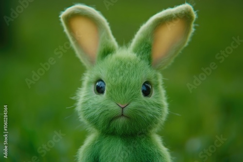 Fototapeta premium Charming Emerald Bunny with Floppy Ears and Cheerful Expression