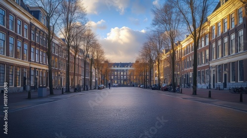 © King558, Fototapeta premium Charming empty street in quaint european city on a clear winter day