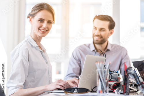 © Yakobchuk Olena, Obraz premium Charming engineer female working in office