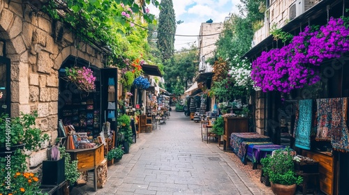 © Big9869, Fototapeta premium Charming Flower-Lined Street in Old City Market