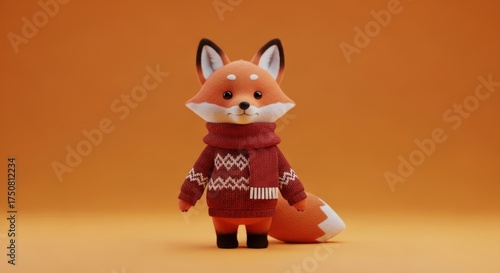 © Aetheria, Naklejka premium Charming fox character rendered in 3D, adorned with cozy winter attire on solid background