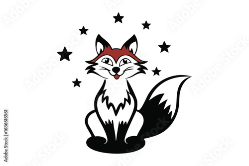 © Sonda, Fototapeta premium Charming Fox Silhouette With Celestial Elements On White Background