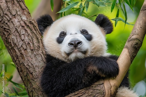 © Adi, Fototapeta premium Charming Giant Panda Relaxing Among the Trees