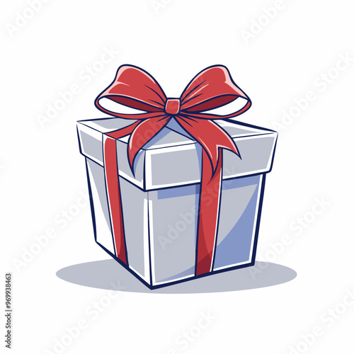 Obraz premium Charming gift box with a red ribbon and bow on a white background
