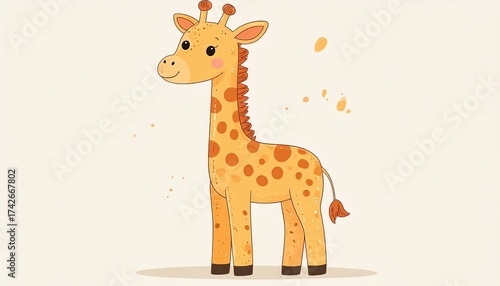 Fototapeta premium Charming Giraffe Illustration, Manga Style, Ivory Background, Digital Art,...