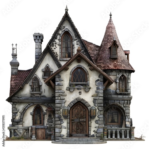 © Nhoeb, Fototapeta premium Charming Gothic Style Stone House with Intricate Architectural Details