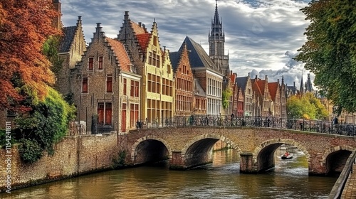 © Puttipong, Naklejka premium Charming Historic Architecture by Waterway in Scenic European Town