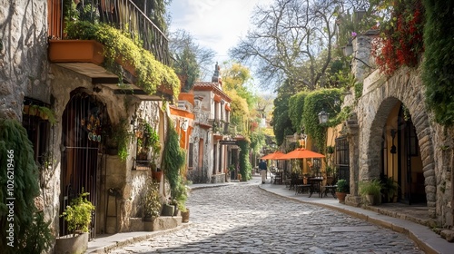 © Eakanan, Obraz premium Charming Historic District with Cobblestone Streets and Cafes