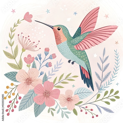 Fototapeta premium charming hummingbird illustration