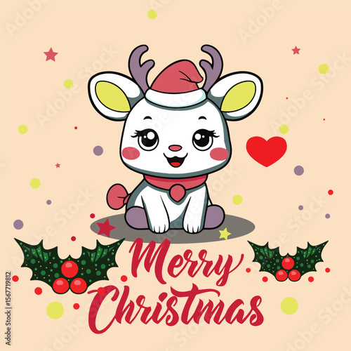 © DigiArt Resource, Naklejka premium Charming illustration of a cute deer in a festive winter setting