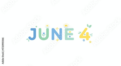 Obraz premium Charming June 4th Typography Design with Pastel Colors and Whimsical Floral...