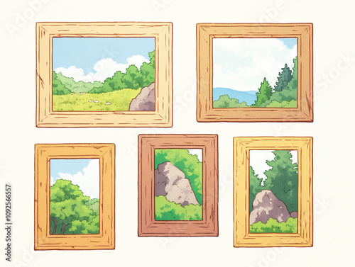 © Matsuo Studio, Fototapeta premium Charming Landscape Paintings in Wooden Frames