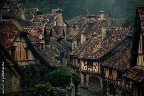 Fototapeta premium Charming medieval architecture with timber framed houses and tiled roofs...