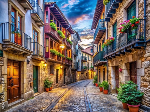 © prapatsorn, Fototapeta premium Charming Medieval Street in Aviles' Carbayedo, Asturias, Spain