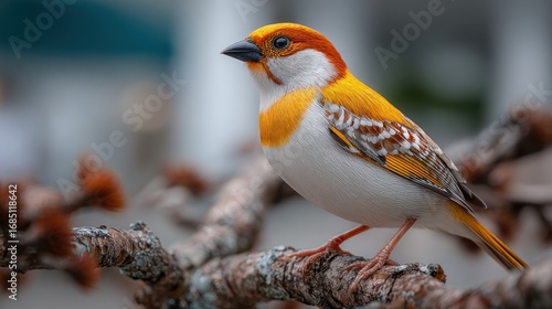 © suus, Naklejka premium Charming orange headed bird posing gracefully on a branch in nature