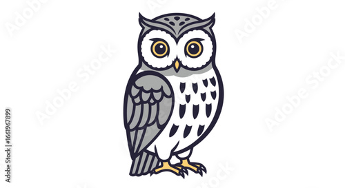 Fototapeta premium Charming owl with intricate details and bold outlines on a light background