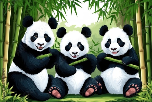 © Michael, Fototapeta premium Charming Panda Moments in Bamboo Grove - Cute and Colorful Animal Artwork