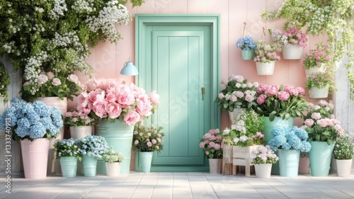 © Olena, Fototapeta premium Charming Parisian flower shop with pastel decor and vibrant blooms Generative AI