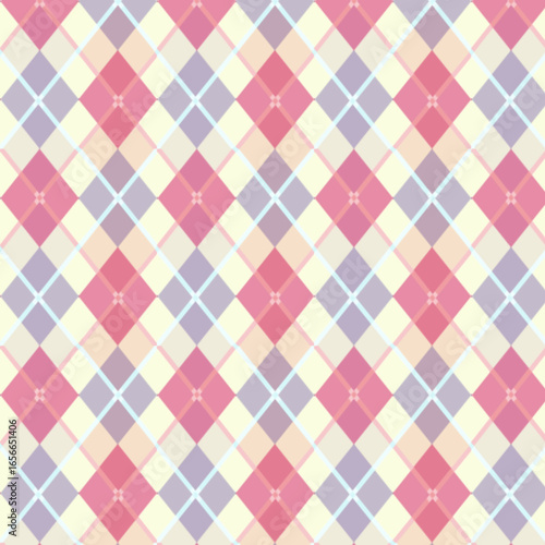 Fototapeta premium Charming pastel argyle pattern offers a sweet, vintage aesthetic for fashion and decor projects