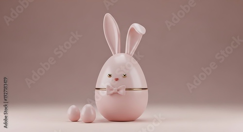 © marufa bibi, Obraz premium charming pastel pink easter bunny egg container with bow and eggs