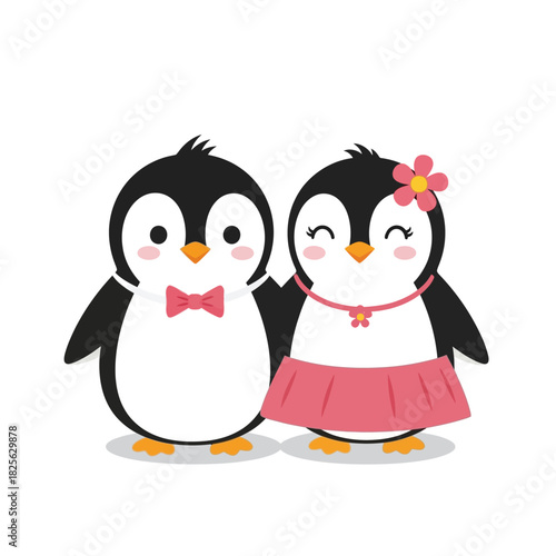 Naklejka premium Charming Penguin Couple in Love - A Delightful Cartoon Illustration.